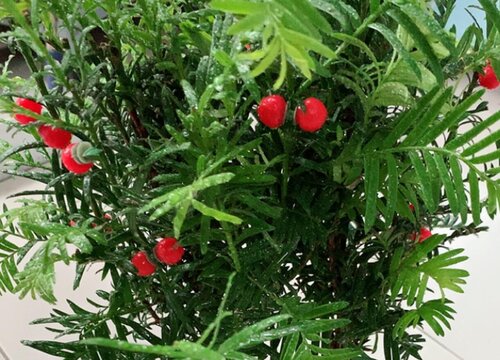 紅豆杉的果實是比較小的,形狀是圓形的,顏色一般是紅色的,外形和葡萄有一點像,果實是比較飽滿的,但不能直接吃,它果實里面的種子和假的種皮都是有毒的,所以不要隨意采摘。