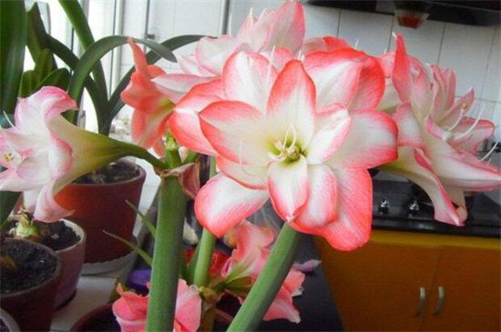 白肋朱頂紅的花朵是白色的,但頂端有著一塊粉紅色,猶如一個(gè)美少女,很多女孩子都特別的喜歡白肋朱頂紅,平時(shí)即使不開花,也非常美麗,適合將其盆栽養(yǎng)殖。