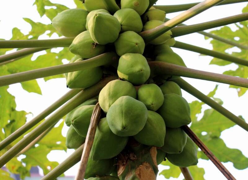 如果養(yǎng)殖戶不想木瓜樹長(zhǎng)得太高,可以對(duì)木瓜樹進(jìn)行打頂摘心。褲可以選擇在木瓜苗的植株拉秧之前的前40天,對(duì)主要枝干進(jìn)行修枝剪葉,保留主要的枝干和少量葉子。