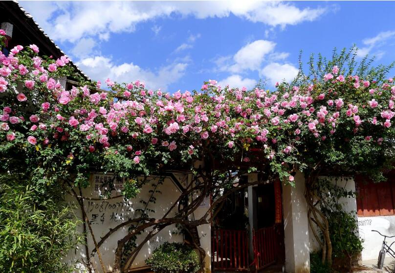 藤本月季是一種攀援性的植物,需要借助一些平臺進行攀爬,所以一般是種植在墻邊或是拱門處、陽臺上。
