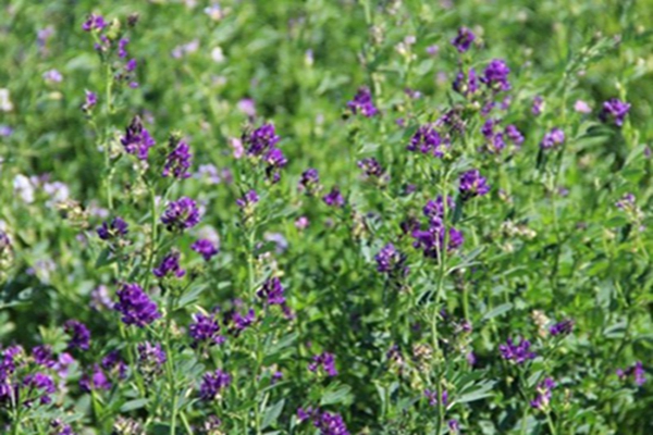 紫花苜蓿通常的生長高度可達到100米左右,這種植物并不高,但是是一種枝葉比較茂盛,而且鮮嫩多汁的植物,它在牧草中屬于營養(yǎng)價值比較高,產(chǎn)量比較大的一種牧草。