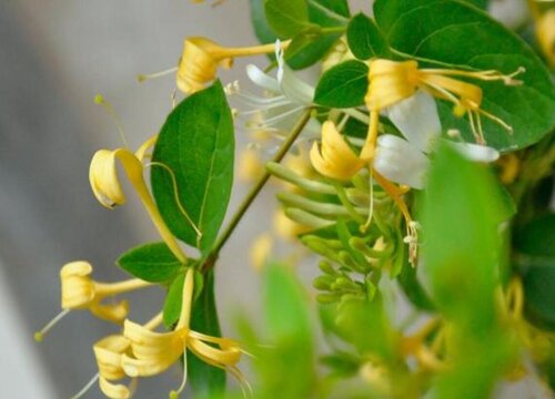 金銀花是忍冬科、忍冬屬的一種植物,是具有匍匐莖的灌木,植株的小枝細(xì)長中空,花朵為黃白色,花期4-6月,多生長在山坡灌叢、疏林、亂石堆、村莊籬笆邊這樣的地方。