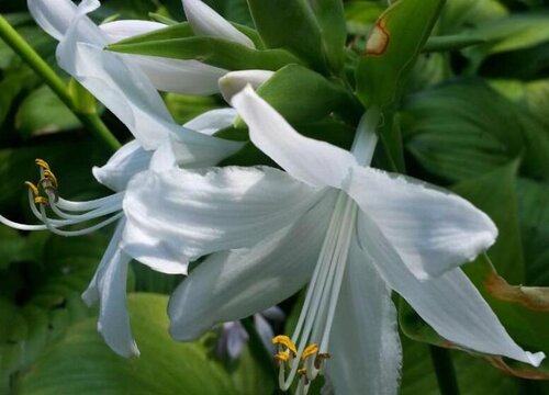 玉簪花的花莖會(huì)從葉叢中抽出,主要在夏秋兩季開花,多開顏色純凈的白花,也有紫色花瓣的品種,有著濃郁的花香,可以作觀賞用。